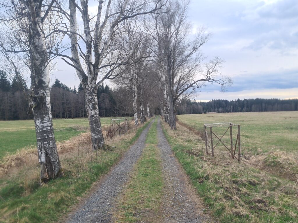 Then you will fall down again to 800m in the vicinity of the extinct settlement Vysoké Lávky. You will definitely enjoy the last 3km of first section, on the vast plains and luxurious gravel road to Prášily..