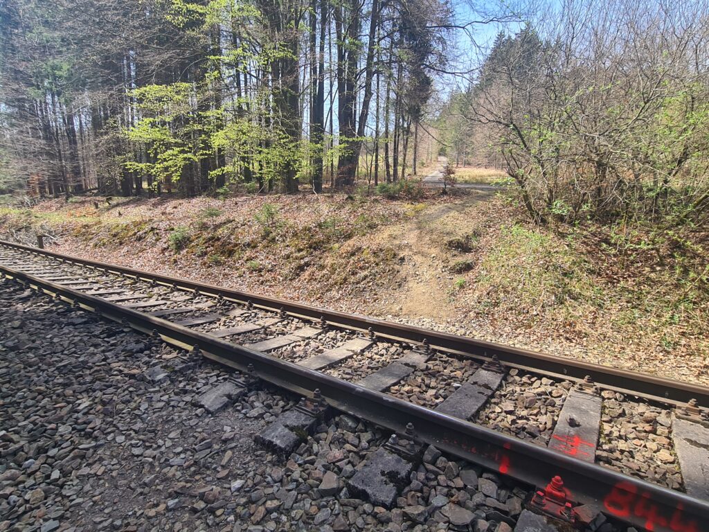 A small trap on the route will wait on you through a railway crossing and then a short downhill walk over stones, which will connect you back to a pleasant forest cycle path.