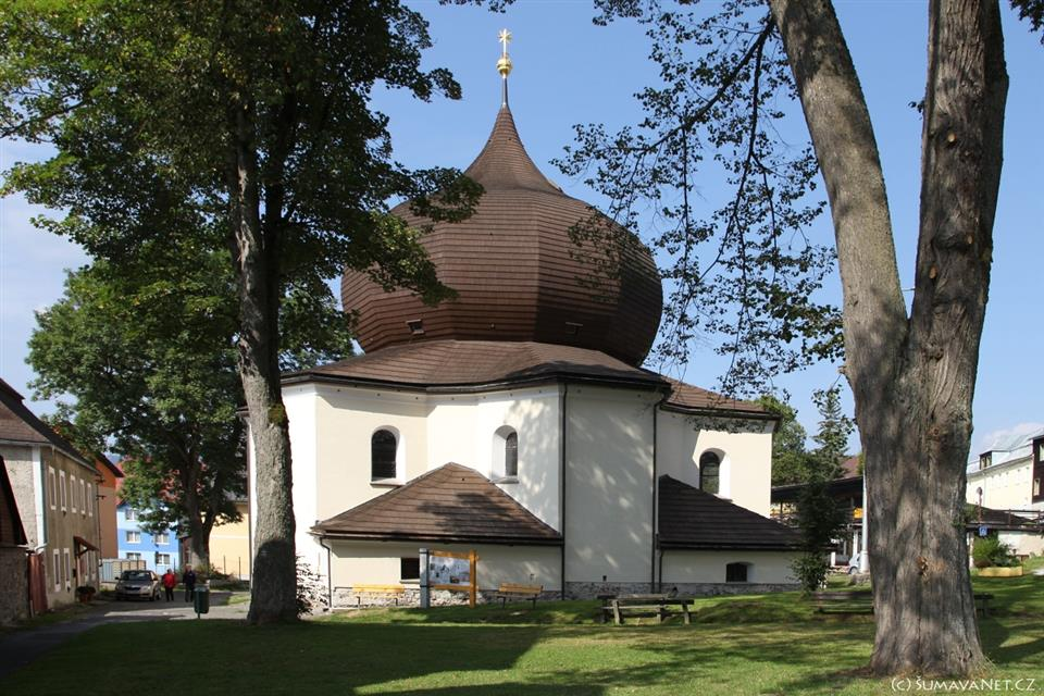 In Železná Ruda, we cannot miss passing by the local church of Our Lady of Help. You are already a short distance before the RestPoint 1, but many riders will probably take a break here or replenish their food, before next big hill..