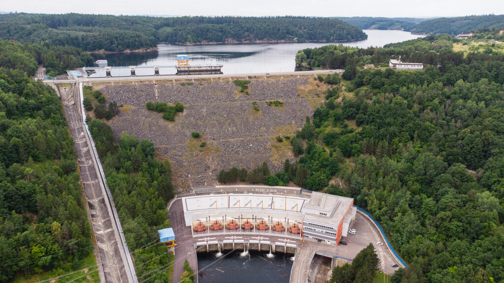 While for a first time you crossed Dalešice water body over a bridge, you will leave it through majestic dam, which is with 100m height even the highest in Czechia.